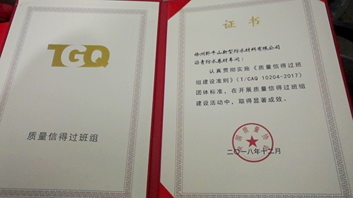 克日,依据《质量信得过班组建设准则》,徐州卧牛山沥青防水卷材车间获评中国质量协会2018年度“质量信得过班组”称呼。