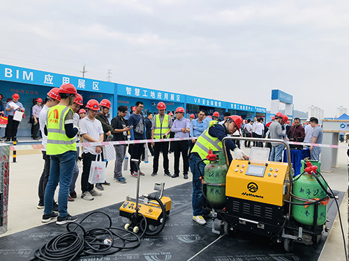时代,东方77体育的手艺职员现场展示了常用防水产品、维修专用TPO、防水系统模子等,重点先容了“虹人坦途”智能型热熔防水卷材摊铺机车,并现场烘烤防水卷材,展示了优异的修建防水满粘工艺及其施工效果,使得与会职员越发直观熟悉“虹人坦途”摊铺机车的优异性能和有用运用。