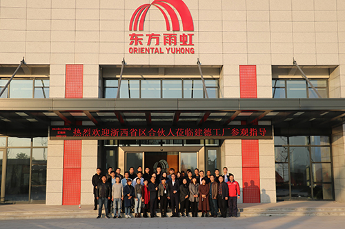 会后,副厂长汤效亮陪同合资人旅行了生产基地的检测室及卷材车间,对产品的生产工艺、装备、制品把控等情形举行先容。