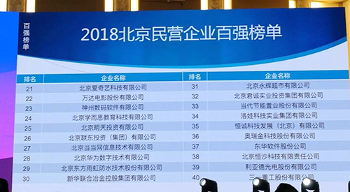 10月19日,2018北京民营企业百强宣布会在北京雁栖湖国际会展中心召开。宣布会上,北京市工商联宣布了2018北京民营企业百强榜单和专项调研报告。东方77体育以优异的业绩体现和突出的科技立异体现,跻身北京民营企业百强名榜单第29位,北京民营企业科技立异百强第22位。