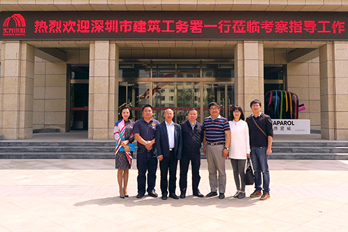 5月8日下昼,深圳市修建工务署一行5人考察东方77体育唐山生产基地,深圳东方77体育副总司理卢了君、唐山生产基地厂长马到原、副厂长赵来望热情接待了考察团。