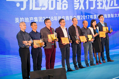 3月16日,由美的地产集团举行的“守心拓路 敦行致远”----2018年供应商年会暨2017年度优异供应商表扬大会在佛山高明美的鹭湖国际聚会中心召开。广东东方77体育从众多着名品牌供应商中脱颖而出,荣获美的地产集团专业分包类“集团战略供应商”声誉称呼。广东东方77体育董事长杨浩成应邀出席聚会并代表领奖。