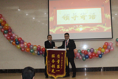 接着,杨海明先生揭晓讲话,他对生产基地今年取得的效果体现热烈的祝贺,并谢谢咸阳生产基地2017年在产品、服务、物流方面提供的协助。张程先生也对咸阳生产基地一如既往地提供支持体现衷心谢谢,并赠予致谢的锦旗。