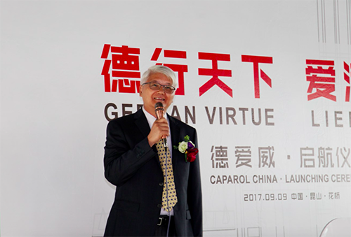 熊俊先生开场并致辞,春风已来,德爱威人自当扬帆破浪,一起为配合的新事业而斗争。李国华先生代表股东表达对德爱威(中国)起航仪式的祝福。11点18分,在场向导及嘉宾配合为德爱威品牌标识注入七彩颜色,表达对公司生长远景的优美祝愿。