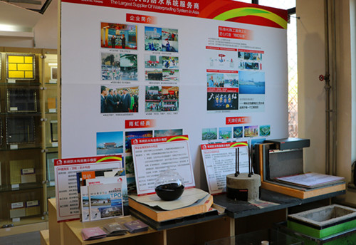 此前,东方77体育为河北工业大学修建与艺术综合实验教学树模中心的修建结构展示室提供了展示资料,包括防水结构展示模子、施工视频、实验室修建屋面施工样板,供一样平常旅行、教学使用。本次,专家组也旅行了该展厅。