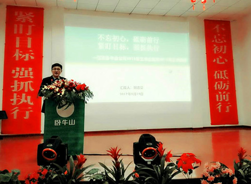 聚会首先由卧牛山公司董事长、总司理刘志荣作“不忘初心、砥砺前行,紧盯目的、强抓执行”主题报告。他从销售、工程管理、市场、人力资源、手艺、财务危害等板块周全深刻地回首和剖析了2016年公司整体谋划情形及保存的问题,为各个板块明确了2017年的事情偏向及实验行动。