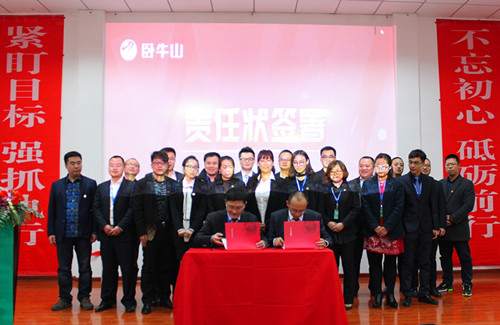 卧牛山董事长、总司理刘志荣与直属重大营业部签署2017年责任状