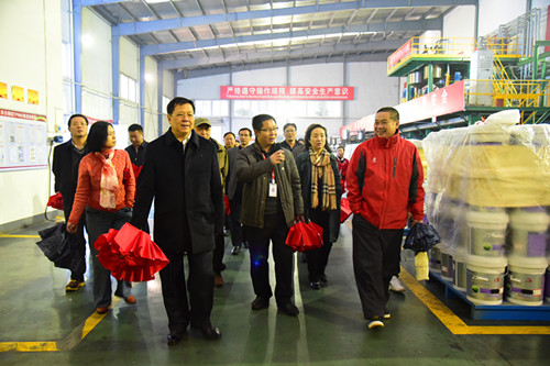 12日下昼,旅行组来到岳阳市云溪区绿色化工工业园,岳阳东方77体育厂长向锋代表公司热情接待了一行。一行认真听取了向锋汇报东方77体育2016年的总体谋划情形,随后旅行了岳阳工厂水性涂料车间及高分子卷材车间,深入相识了涂料、高分子产品的施工工艺、现场操作流程及重大工程应用情形。